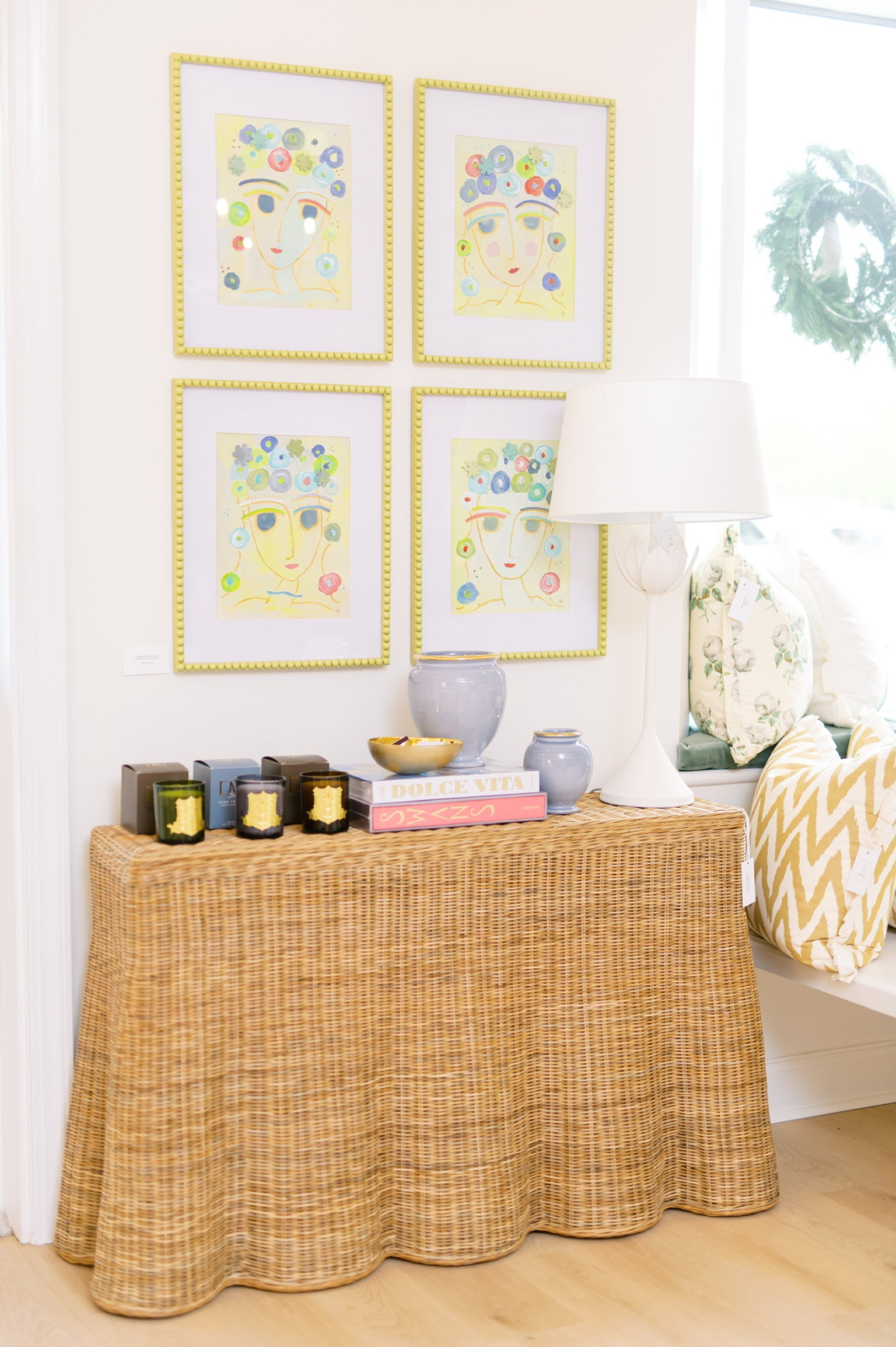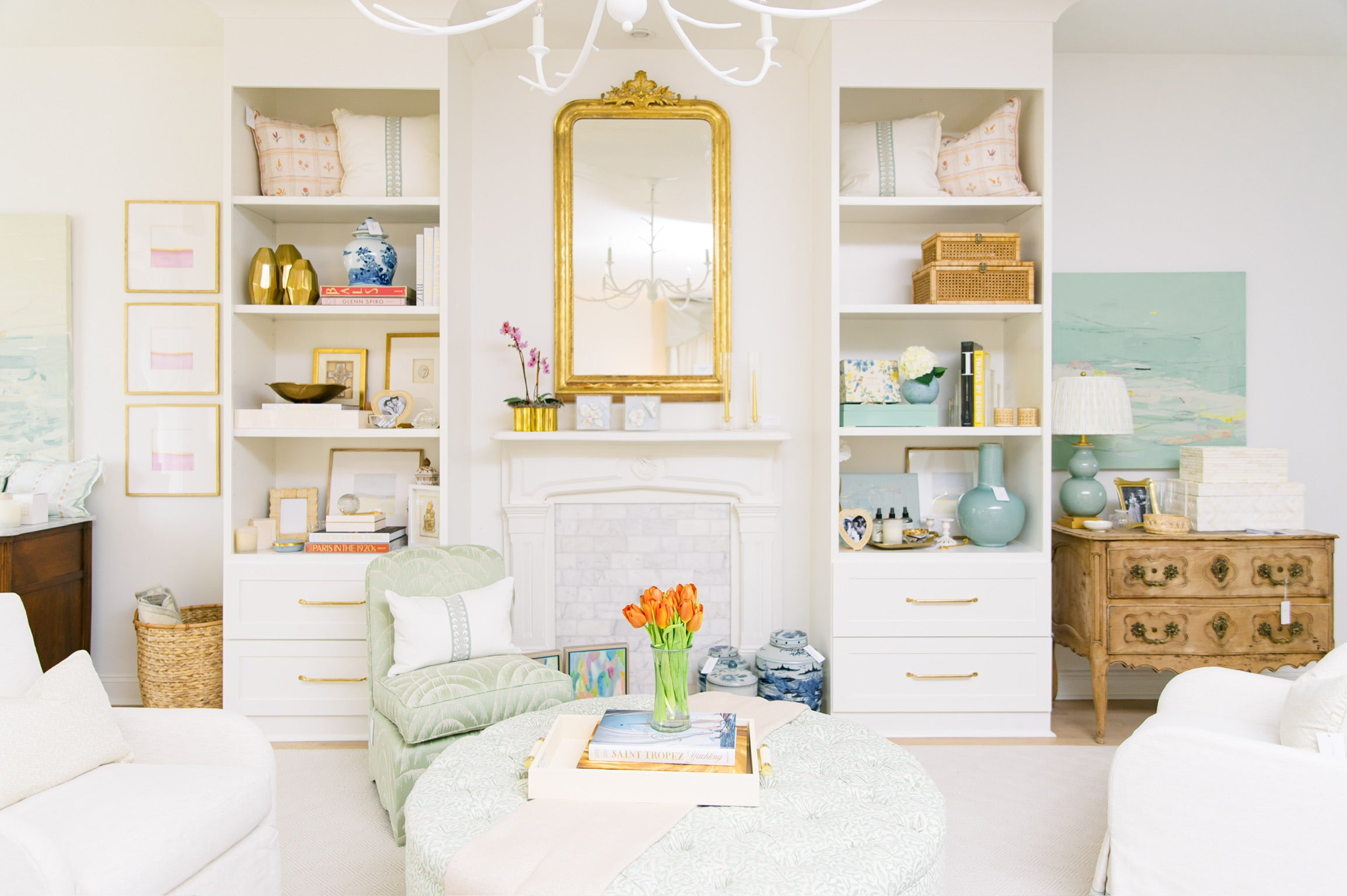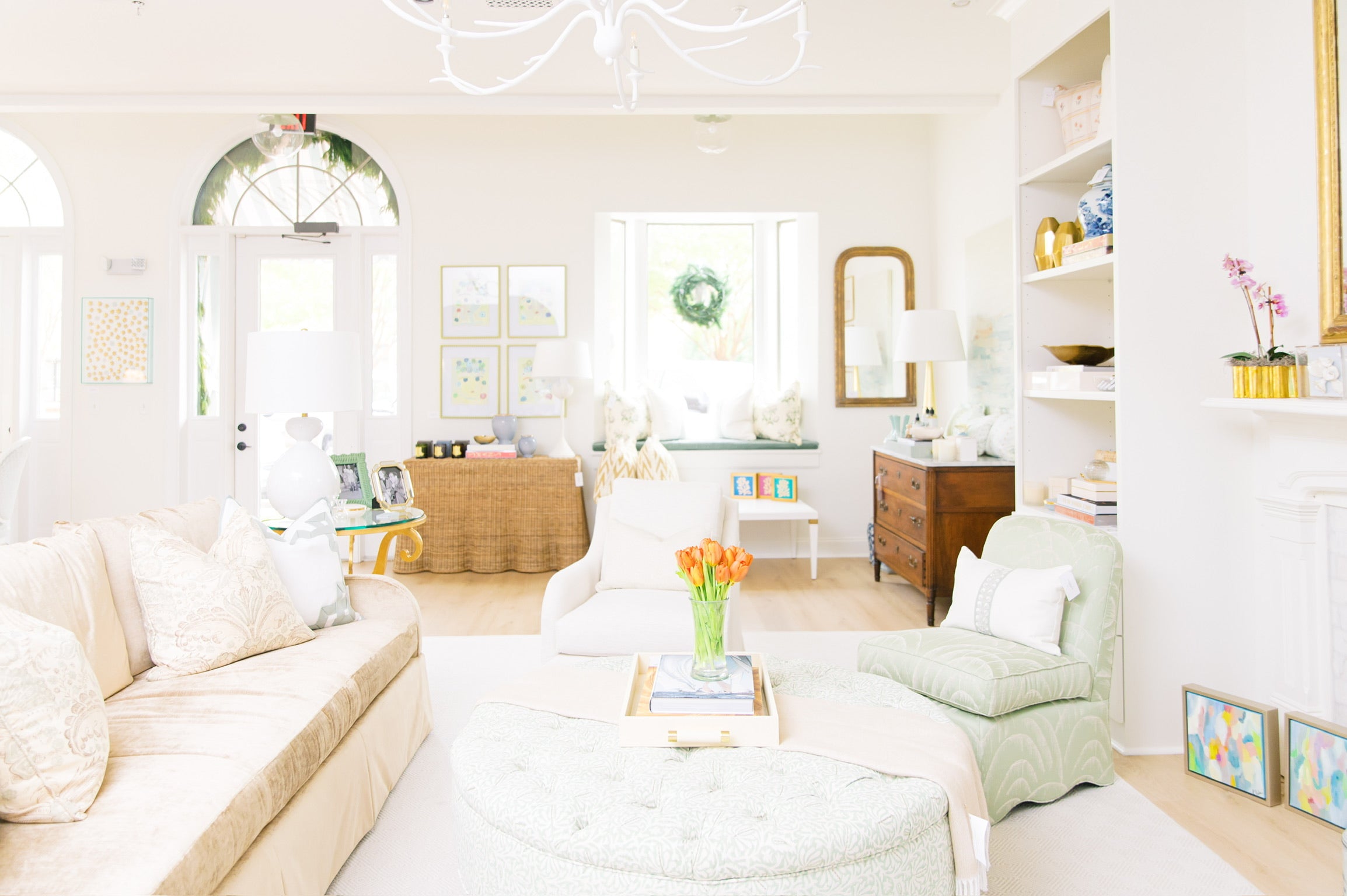 In August of 2023, I opened my design studio and storefront as both a creative workspace and a curated shopping experience. The space is styled much like a mini apartment, allowing clients to step into an environment that reflects the way I approach design—layered, livable, and elevated. Within the studio, I meet with clients to plan their projects, while the storefront showcases custom furniture, pieces crafted by local artisans, Visual Comfort lighting, rugs, accessories, gifts, and original artwork. Every detail is intentionally selected to not only inspire but also demonstrate how thoughtful design elements come together in a home.